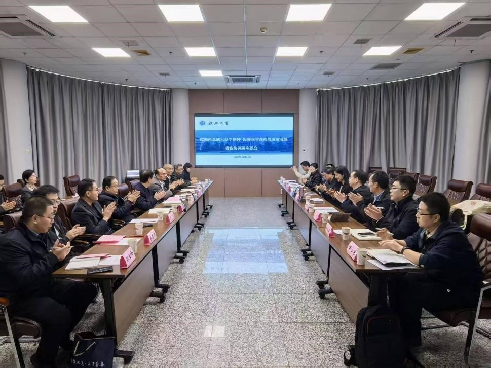 座谈会上,薛建兴介绍了此次调研的背景和目的,对西北大学在西北联大历史及精神研究方面的举措与成效给予充分肯定,希望学校聚焦教育强国建设、教育科技人才一体改革和陕西高校高质量发展,持续深入挖掘西北联大精神的时代意义和价值,为我省高等教育发展提供借鉴、注入活力。