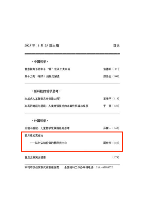 我校哲学学院邵世恒副教授在顶级期刊《哲学研究》2025年第11期发表以《驳斥实在意义论——以对认知价值的解释为中心》为题的论文。