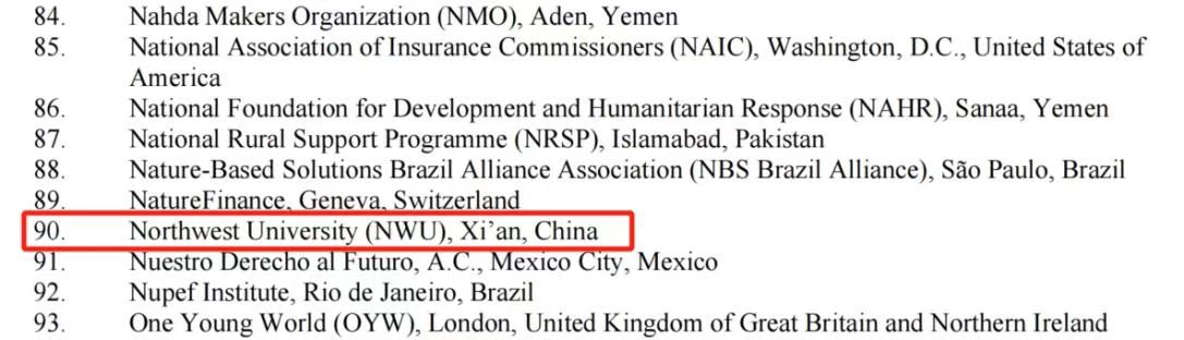 UNFCCC作为全球气候治理的核心机制,接纳全球政府组织与各类机构团体两个类别的组织以观察员身份参与国际气候谈判、分享各国气候行动经验。截至目前,全球仅3000余家机构获非政府组织观察员的资格,中国内地单位占比不足2%,其中获批高校包括清华大学、中国人民大学、厦门大学、中央财经大学、北京理工大学等。此次西北大学的成功获批,为我国高校深度参与气候变化多边进程提供了新支点。