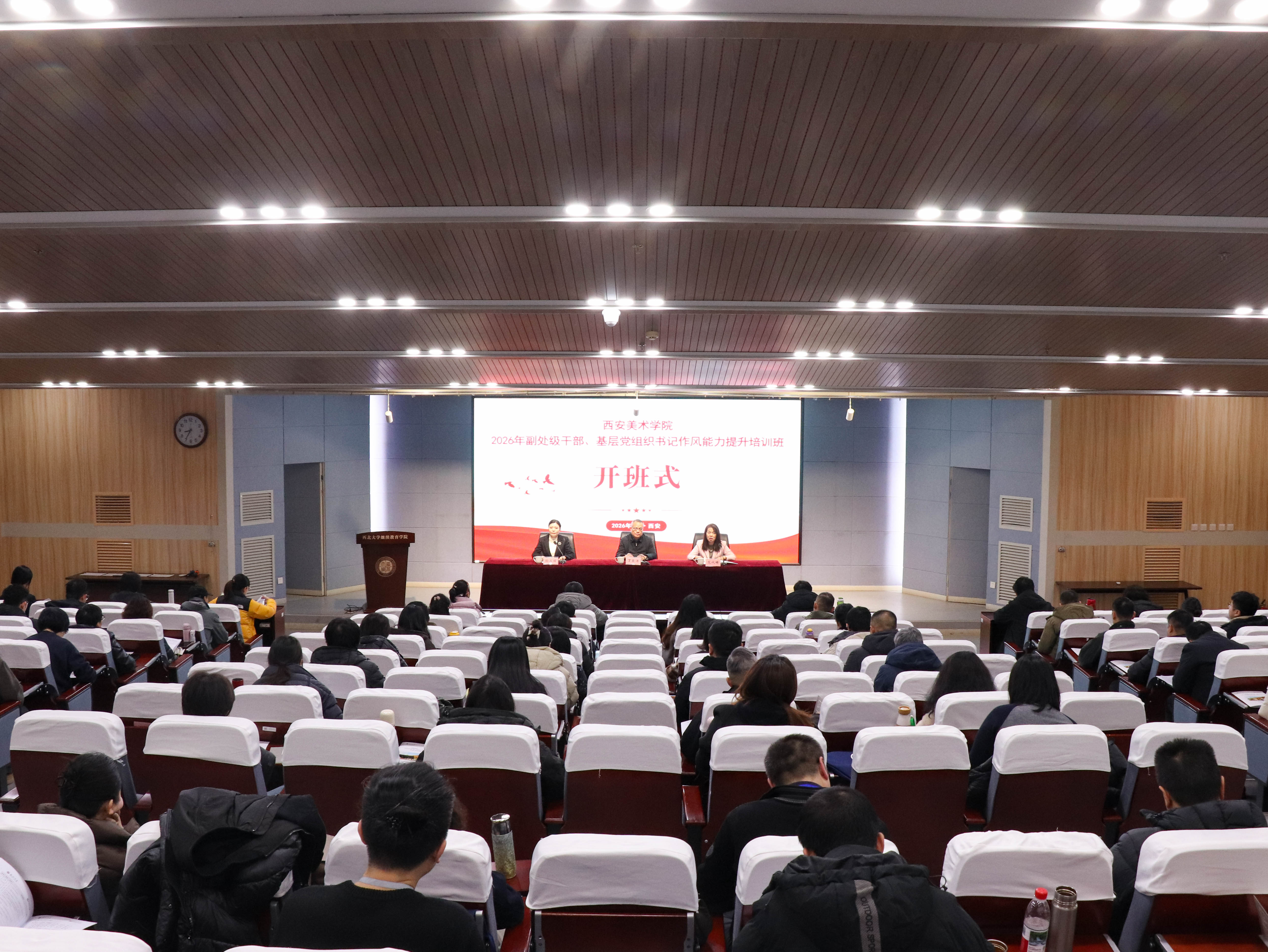 1月7日,由西安美术学院主办、中华文化培训学院承办的西安美术学院2026年副处级干部、基层党组织书记作风能力提升培训班在我校桃园校区开班。西安美术学院党委书记丁巨涛,我校党委常委、副校长范代娣出席开班式。来自西安美术学院的副处级干部、基层党组织换届后新任职的党支部书记80余人参加。