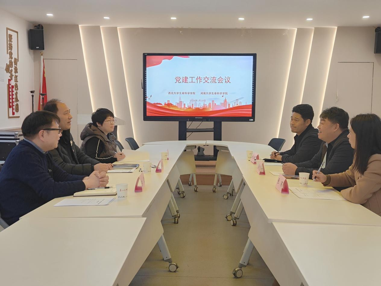 1月19日下午,西北大学生命科学学院党委与河南大学生命科学学院党委,在西北大学太白校区围绕“深化‘一融双高’,以高质量党建引领高质量发展”主题展开深入交流。河南大学生命科学学院党委书记梁建忠、党委副书记宋永鹏,西北大学生命科学学院党委书记、党委副书记、党委组织员参加交流。会议由西北大学生命科学学院党委书记刘小光主持。
