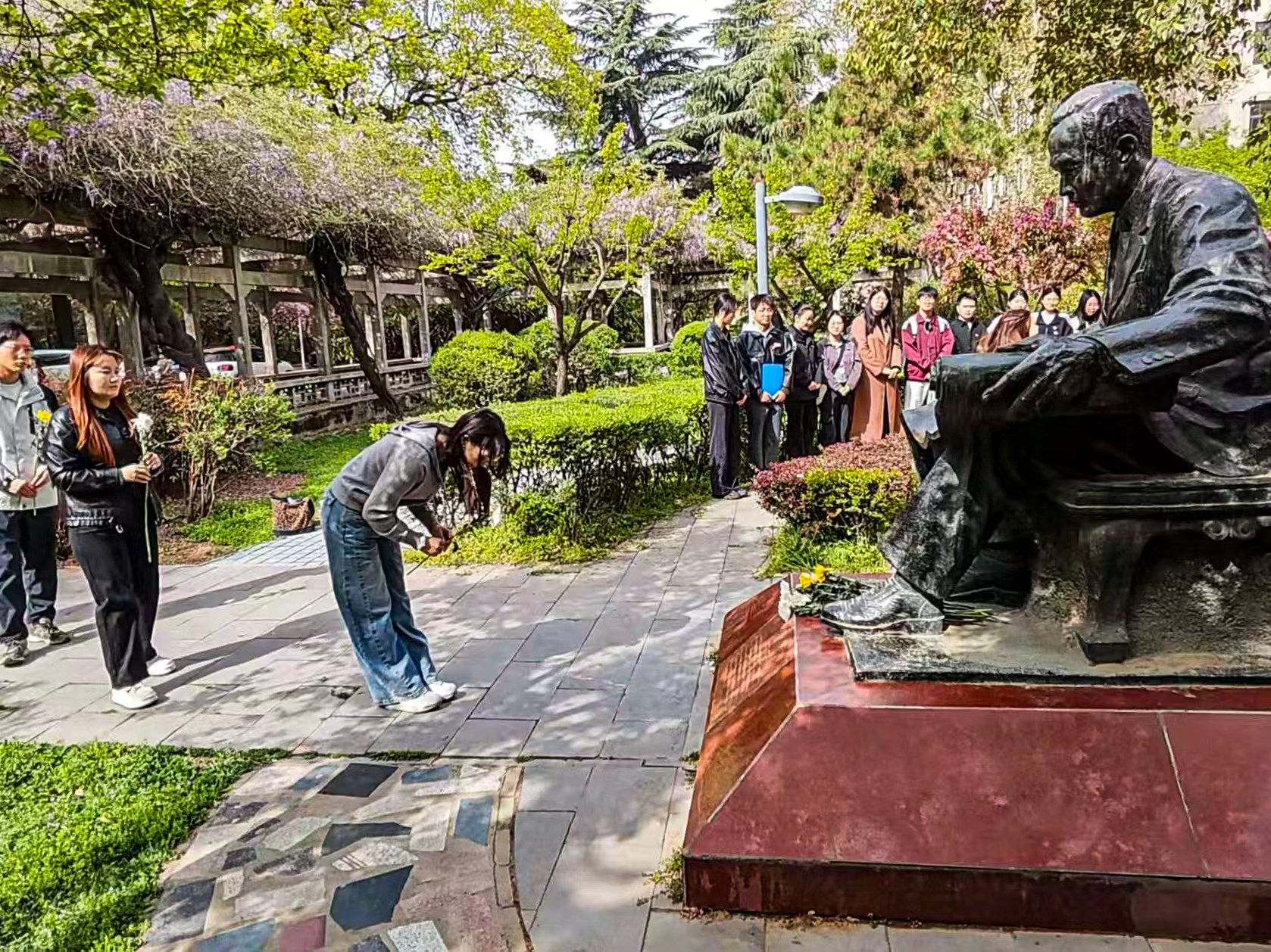 在太白校区紫藤园岳劼恒先生雕像前,全体师生举行了缅怀仪式。师生向岳先生雕像三度深躬,致以崇高敬意。随后,师生重温入党誓词,铮铮誓言在先生雕像前激荡回响,砥砺初心。党员代表袁润捷深情讲述岳劼恒先生矢志不渝的学术追求与无私奉献的崇高风范,表达对先生的深切追思与敬仰。全体党员依次敬献鲜花,朵朵素菊寄托无限哀思与景仰。