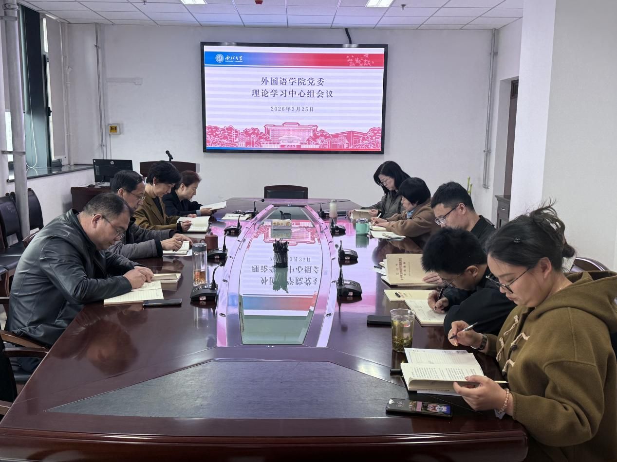 3月25日上午,外国语学院党委召开理论学习中心组学习会议,专题学习贯彻习近平总书记关于树立和践行正确政绩观的重要论述,学院党委理论学习中心组全体成员参加,会议由学院党委书记赵志厚主持。